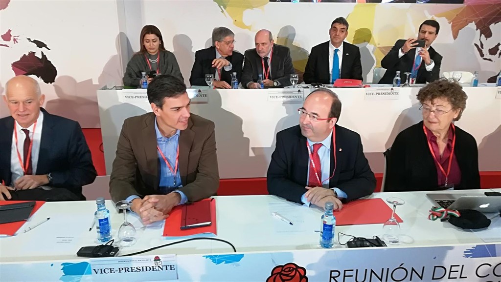 Iceta ha pronunciado este discurso ante la mirada del presidente de la Internacional Socialista, Yorgos Papandreu; de su secretario general, Luis Ayala, y de la presidenta de la Internacional Socialista de Mujeres, Ouafa Hajji, además de Pedro Sánchez, que intervendrá el fin de semana.