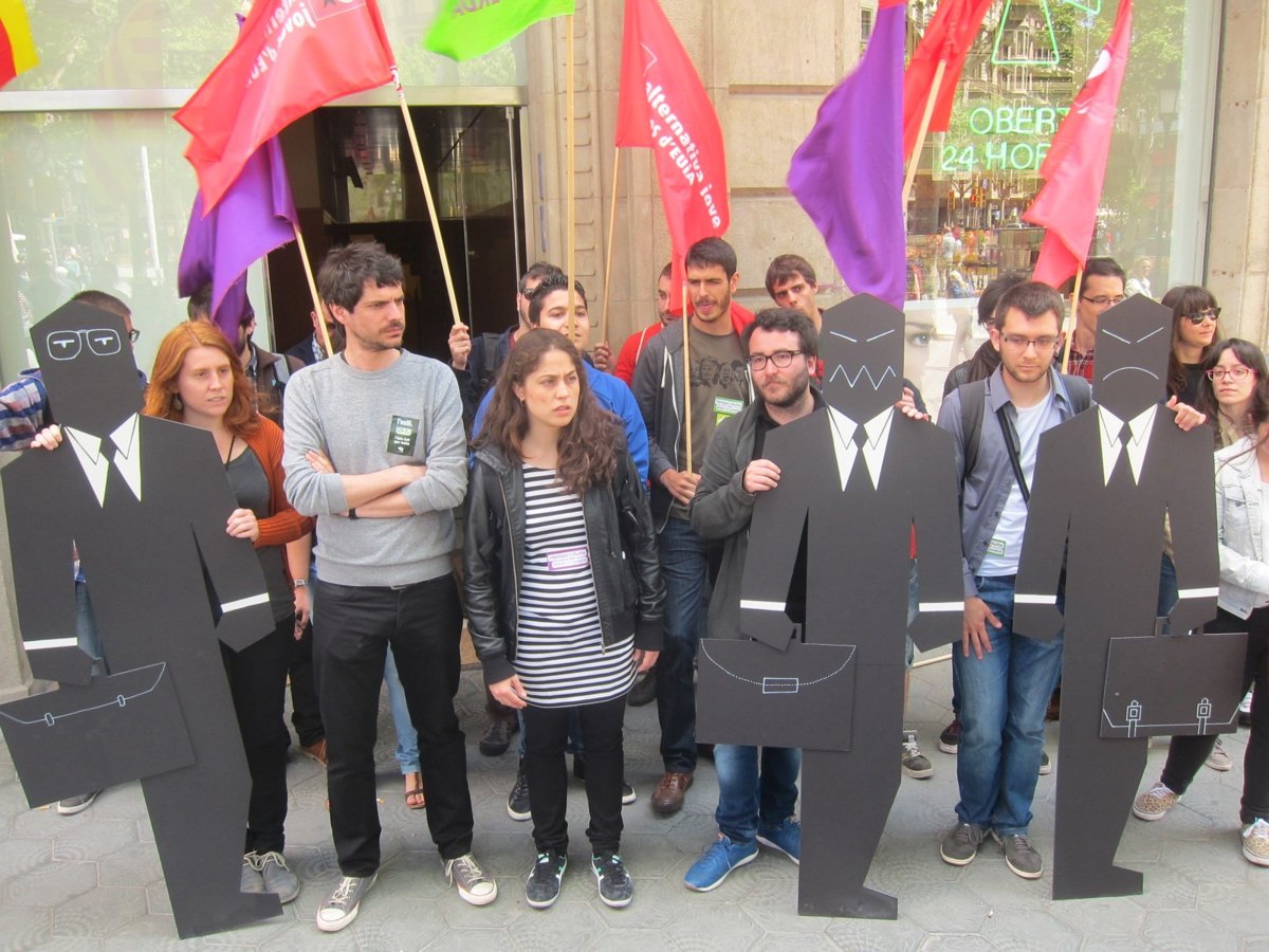 Los jóvenes que han acudido a la concentración han gritado consignas como 'Anticapitalistas', 'No se entiende, gente sin casas, y casas sin gente' y 'Hoy la democracia es en la calle y no en el Parlament'.