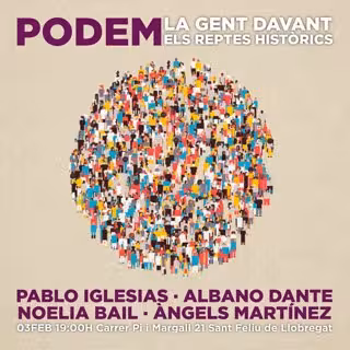 En el acto 'La gente ante los retos históricos', también participarán el secretario general de Podem, Albano-Dante Fachin; la diputada en el Parlament y secretaria de economía de Podem, Àngels Martínez, y la secretaria de feminismos, Noelia Bail.