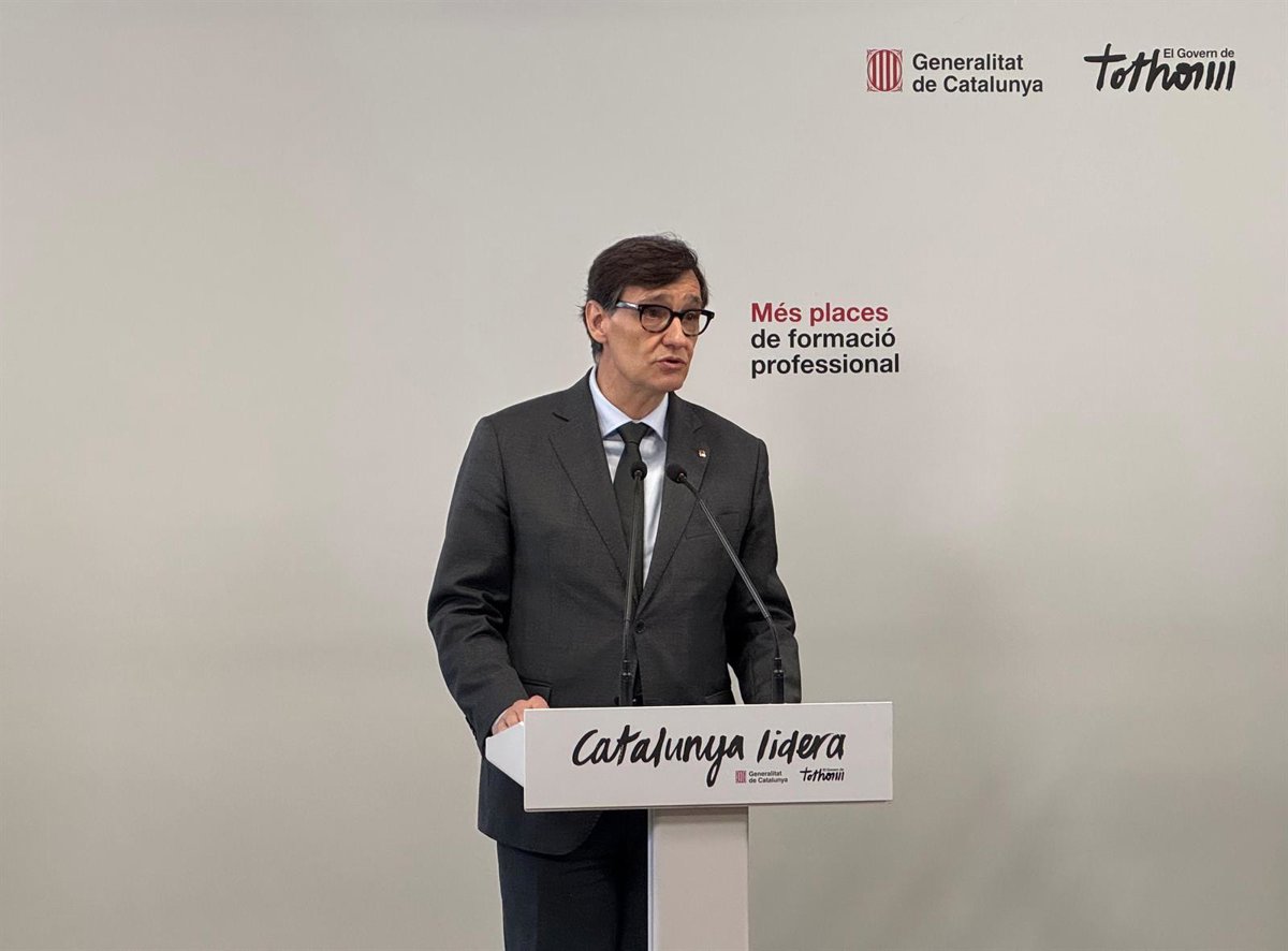 El presidente de la Generalitat, Salvador Illa, ha anunciado que para el próximo curso 2025-2026 se crean nuevas 7.583 plazas de FP y 305 nuevos grupos: "Más plazas que nunca con fondos propios de la Generalitat".