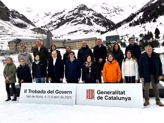 Foto de familia del Govern, presidida por el presidente de la Generalitat, Salvador Illa, durante las jornadas de trabajo del Govern en la Vall de Núria (Girona) - EUROPA PRESS
