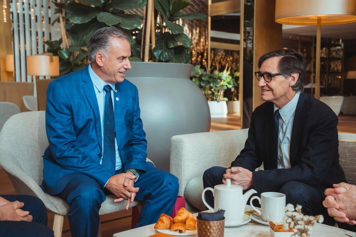 El presidente de la Generalitat, Salvador Illa, y el presidente de Uruguay, Yamandú Orsi, se han reunido este sábado en Barcelona, donde se hace la IV Reunión en Defensa de la Democracia y de la Global Progressive Mobilisation, y han explorado "vías de colaboración" entre Catalunya y Uruguay, informan fuentes del Govern.