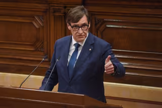 El presidente de la Generalitat de Catalunya, Salvador Illa, interviene durante el pleno del Parlament, a 6 de mayo de 2025, en Barcelona, Catalunya (España). - Alberto Paredes - Europa Press