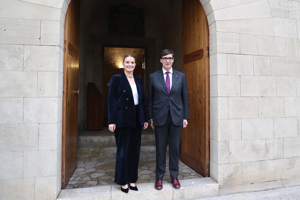 (I-D) La presidenta del Govern balear, Marga Prohens, y el presidente de la Generalitat de Catalunya, Salvador Illa, durante una reunión, en el Consolat de Mar - Isaac Buj - Europa Press