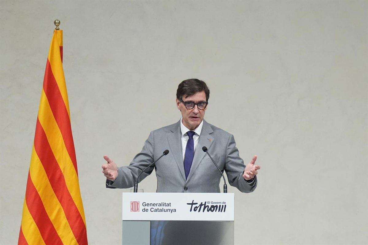 El presidente de la Generalitat Salvador Illa, recibe a los jueces de paz en la Generalitat de Catalunya, a 10 de mayo de 2025, en Barcelona, Cataluña (España). - David Zorrakino - Europa Press