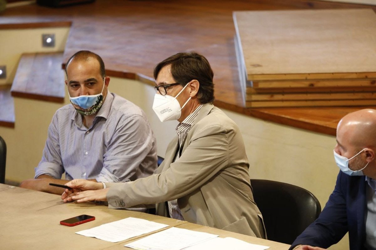 Salvador Illa (PSC) en una visita a la zona afectada por el incencio de Santa Maria de Queralt (Tarragona) en julio. - PSC