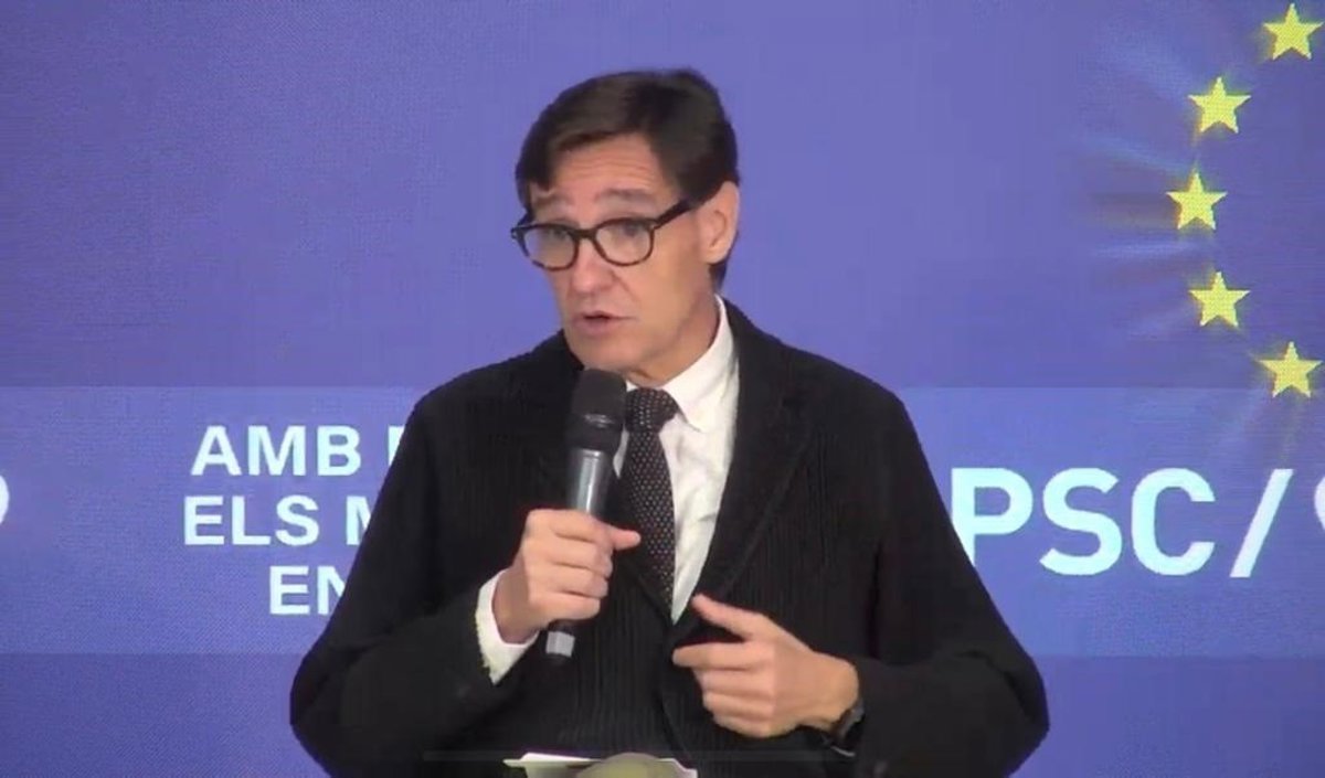 El líder del PSC, Salvador Illa, en el acto del PSC 'Amb Europa, els municipis en marxa' ('Con Europa, los municipios en marcha'). - PSC