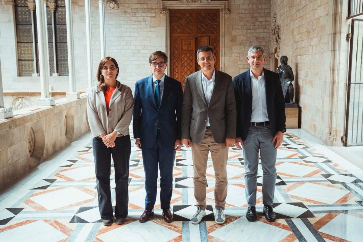 El presidente de la Generalitat, Salvador Illa, junto a la consellera de Investigación y Universidades, Núria Montserrat, reciben al Premio Nobel de Física Didier Queloz - GOVERN