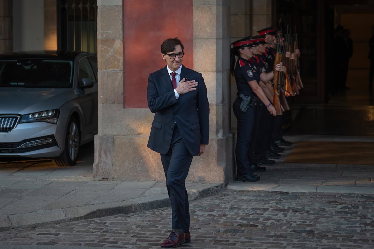 El cuerpo de guardia rinde honoresal nuevo president de la Generalitat de Catalunya, Salvador Illa, a su salida tras el pleno del debate de investidura - David Zorrakino - Europa Press