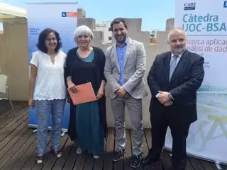 El rector de la UOC, Josep A.Planell, y la alcaldesa de Barcelona y presidenta del Consell d'Administració de BSA, Dolors Sabater, han firmado la constitución de la Cátedra UOC-BSA para la investigación aplicada y el análisis de datos en salud.