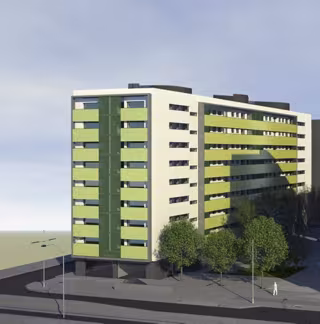 Consta de pisos de tres dormitorios y unos 74 metros cuadrados, además de un aparcamiento subterráneo que está en fase de construcción.