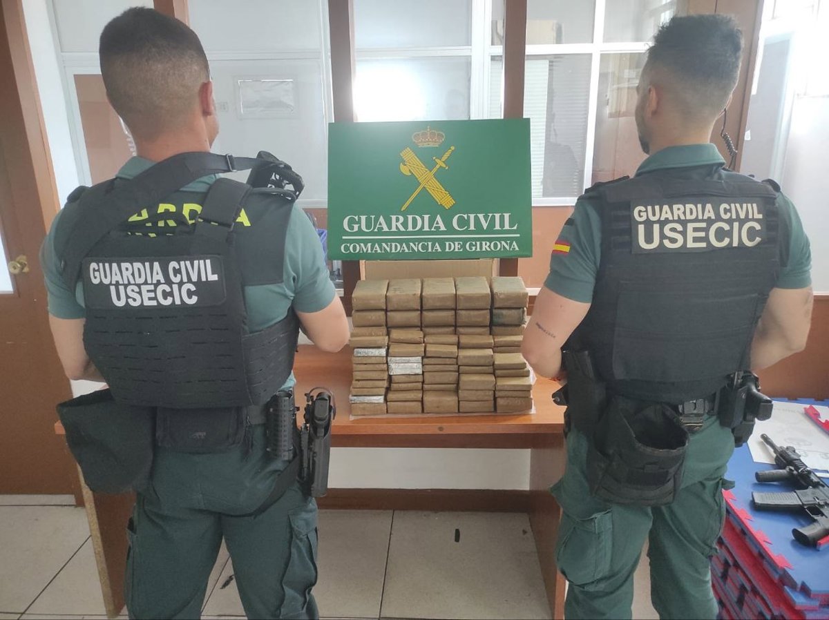 La Guardia Civil ha incautado este domingo 46 kilogramos de hachís ocultos en el maletero de un vehículo en la AP-7 en Garrigàs dirección a La Jonquera (Girona) tras un control de tráfico y que se saldó con la detención del único conductor del turismo.