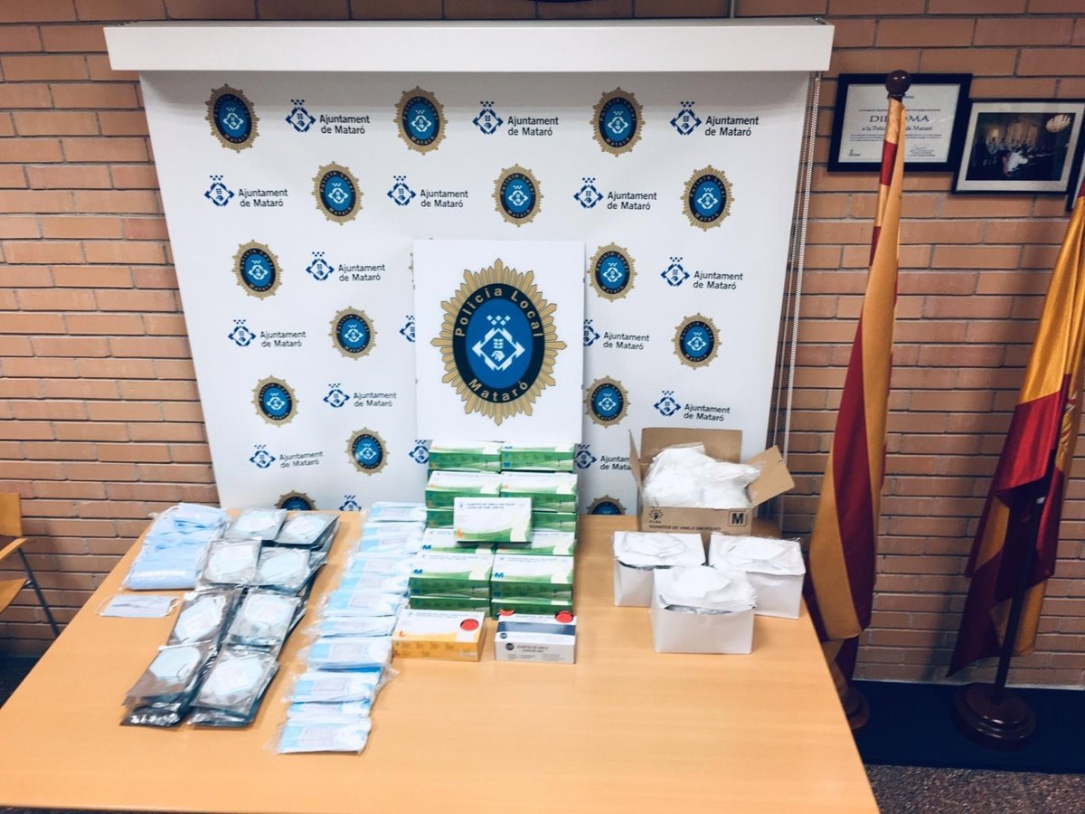 La Policía Local de Mataró (Barcelona) incauta guantes y mascarillas que se vendían por 10 euros durante la pandemia de coronavirus. - AYUNTAMIENTO DE MATARÓ