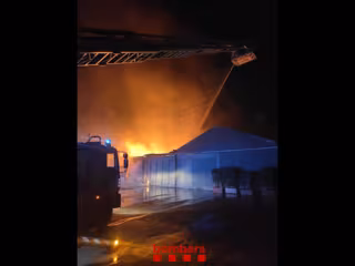 Los Bombers mantienen tres dotaciones remojando la zona de las naves "destruidas", que servían como almacenes para empresas de la zona.