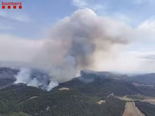 El jefe de los Bombers de la Generalitat, David Borrell, ha informado de que el incendio que quema desde el sábado por la tarde en Santa Coloma de Queralt (Tarragona) ya ha quemado unas 1.240 hectáreas y sigue a las 14.10 horas de este domingo activo "y violento".