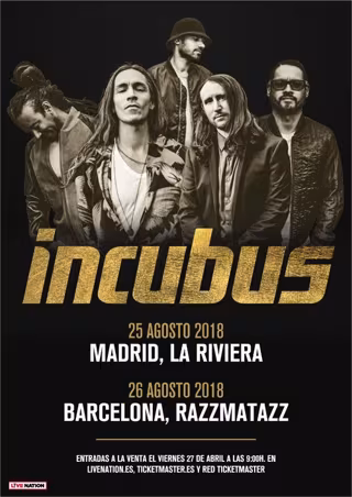 Incubus volverán a España en verano para ofrecer dos conciertos: el 25 de agosto en La Riviera de Madrid y el 26 de agosto en la sala Razzmatazz de Barcelona.