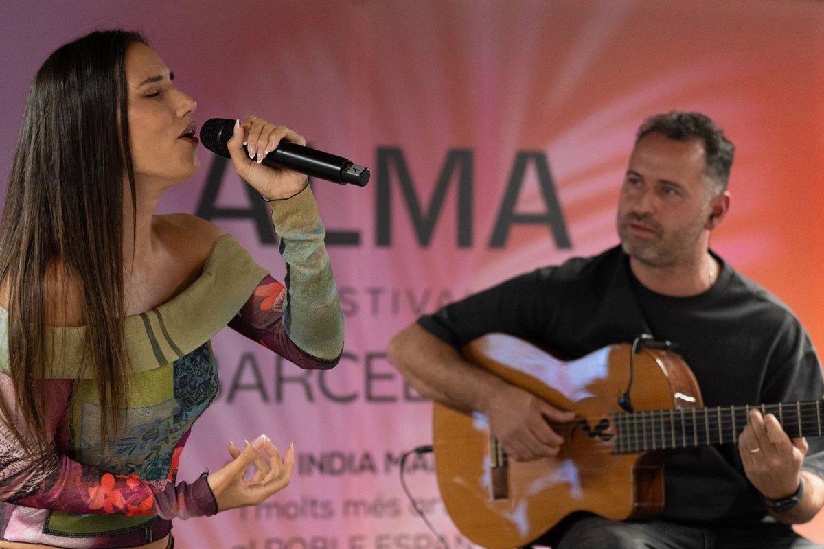 India Martínez ha actuado este martes en el Metro de Barcelona en un concierto previo al Alma Festival Barcelona, que se celebra en los meses de junio y julio, donde dará un concierto el próximo 12 de julio.