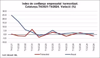 El índice de confianza empresarial de Catalunya bajó un 1,9% en el cuarto trimestre de este año respecto al trimestre anterior, ha explicado en un comunicado este miércoles el Institut d'Estadística de Catalunya (Idescat).