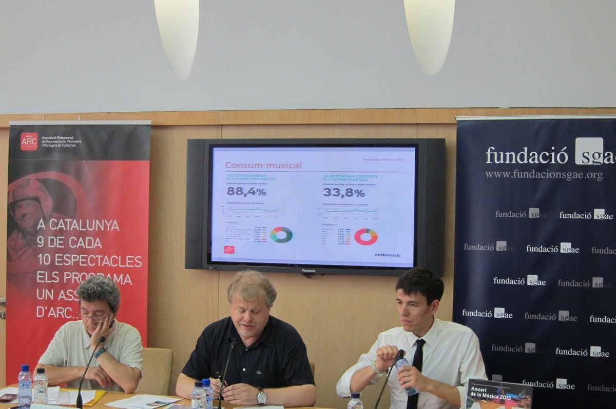 Gendrau ha indicado que el consumo musical se estabiliza después del descenso de los últimos años, y que un 33,8% de catalanes asistió a al menos un concierto en 2014, cifra que aumenta cuatro puntos respecto al 2013; este dato contrasta con el recorte de la programación de conciertos en salas, que descienden tanto en Barcelona (-21,4%) como en el resto de Catalunya (-12,5%).