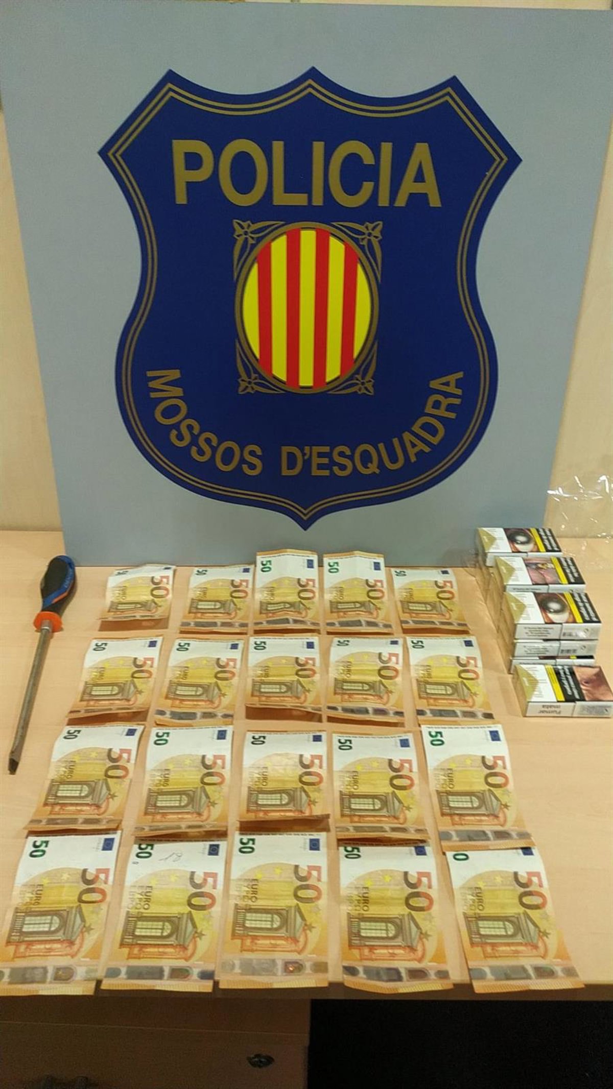 Los 1.000 euros en efectivo que encontraron los Mossos d'Esquadra tras el registro de los presuntos ladrones - MOSSOS D'ESQUADRA