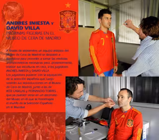 Los internacionales españoles del FC Barcelona Andrés Iniesta y David Villa han inaugurado este martes sus propias esculturas que pasarán a formar parte de la colección del Museo de Cera de Madrid.