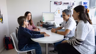 Investigadores del Institut de Recerca Sant Joan de Déu con uno de los pacientes diagnosticados y su madre - INSTITUT DE RECERCA SANT JOAN DE DÉU