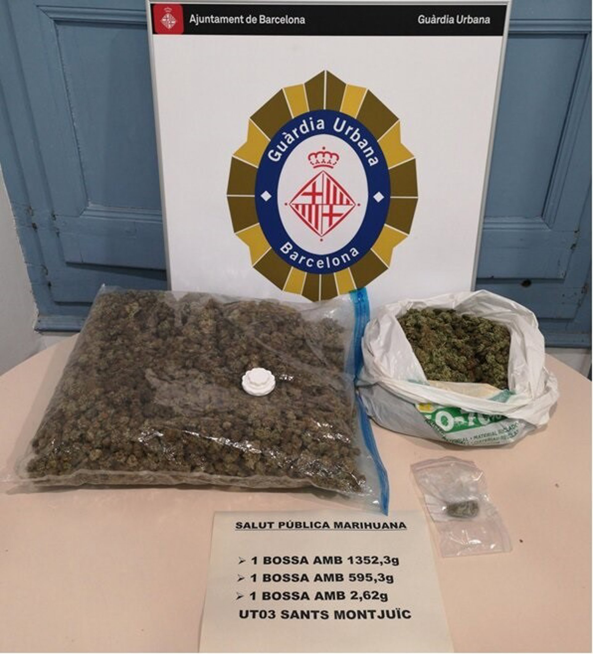 Dos kilos de marihuana incautada por Guardia Urbana de Barcelona - GUARDIA URBANA
