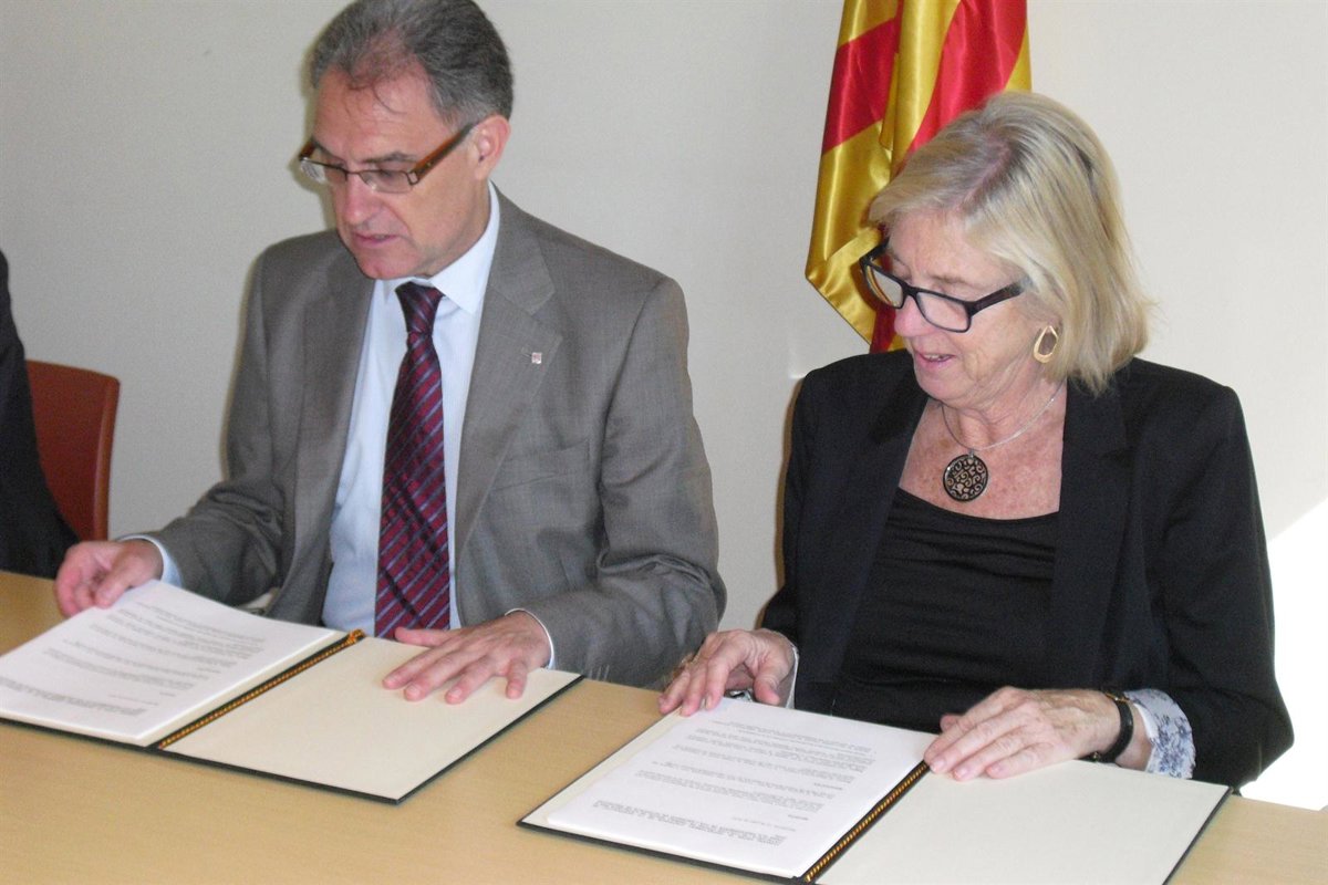 El secretario general de Interior, Xavier Gibert, y la decana del Colegio, Núria Carrera, han firmado este jueves el documento, que prevé la disponibilidad de equipos de trabajadores sociales formados para que actúen con un tiempo de respuesta adecuado.