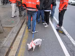 Los manifestantes, que han llevado un cerdito que llevaba escritas las palabras 'Puig' y 'Gassió' en referencia al conseller Felip Puig y al director general, han desplegado una pancarta con el mensaje 'Cuerpos especiales en lucha: con la seguridad no se juega', y han cortado la calle el tiempo que ha durado la reunión, entre las 16 horas y las 18.