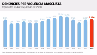 Los partidos judiciales del área metropolitana de Barcelona registraron 9.184 denuncias por violencia de género en 2022 en el área metropolitana de Barcelona, que en un 65% de los casos presentaron las mismas mujeres a través de un atestado policial.