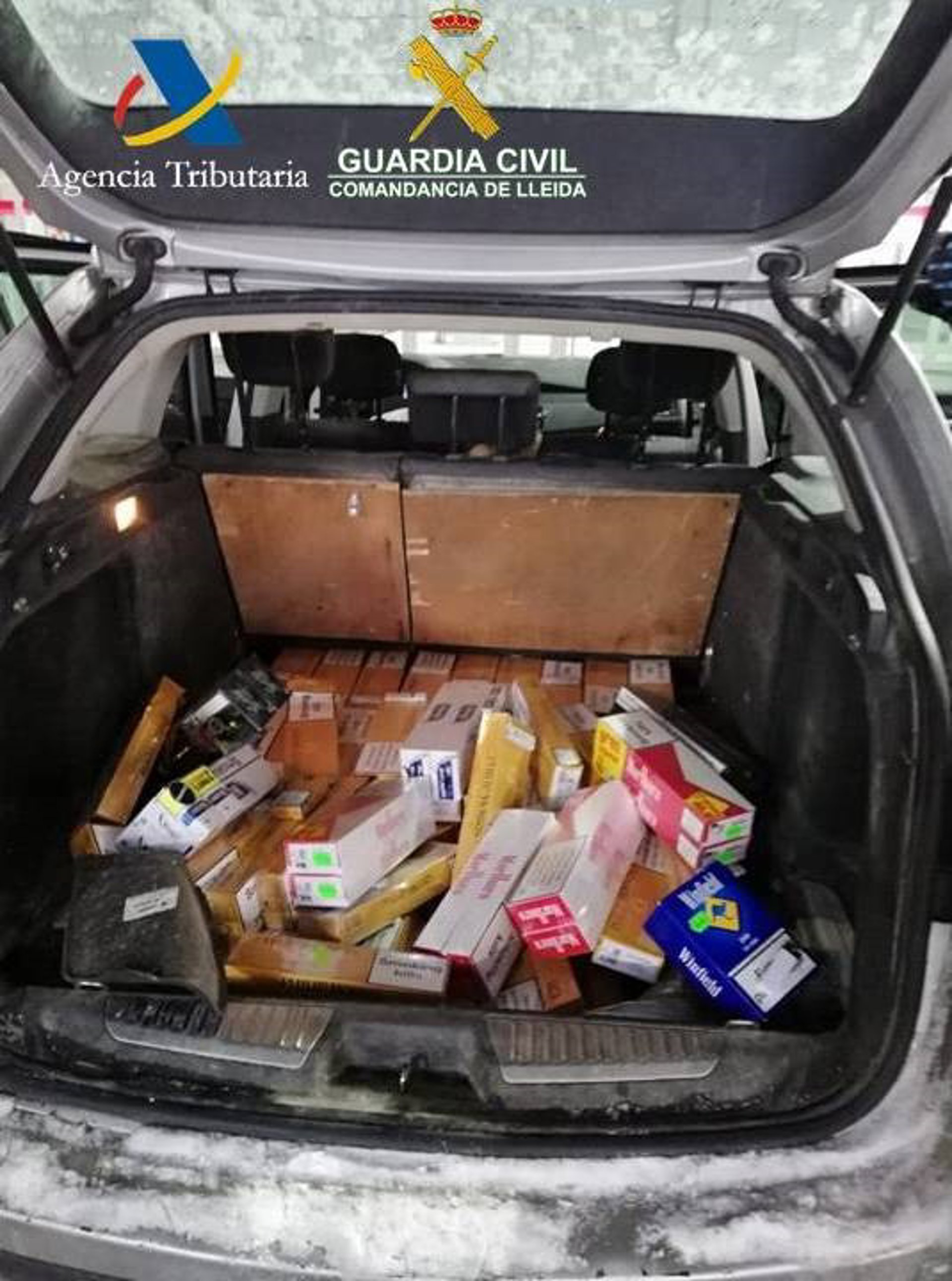 La Guardia Civil intervino el domingo 736 cajetillas de tabaco de contrabando de varias marcas en la aduana de la Farga de Moles (Lleida) que tienen un valor en el mercado de 3.365 euros.