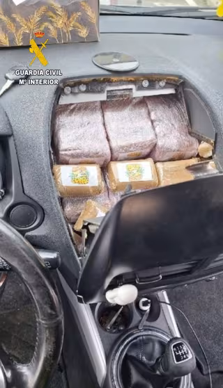 Tras identificar al conductor, inspeccionaron el vehículo con un perro del Servicio Cinológico de la Guardia Civil, que marcó insistentemente el salpicadero del vehículo.