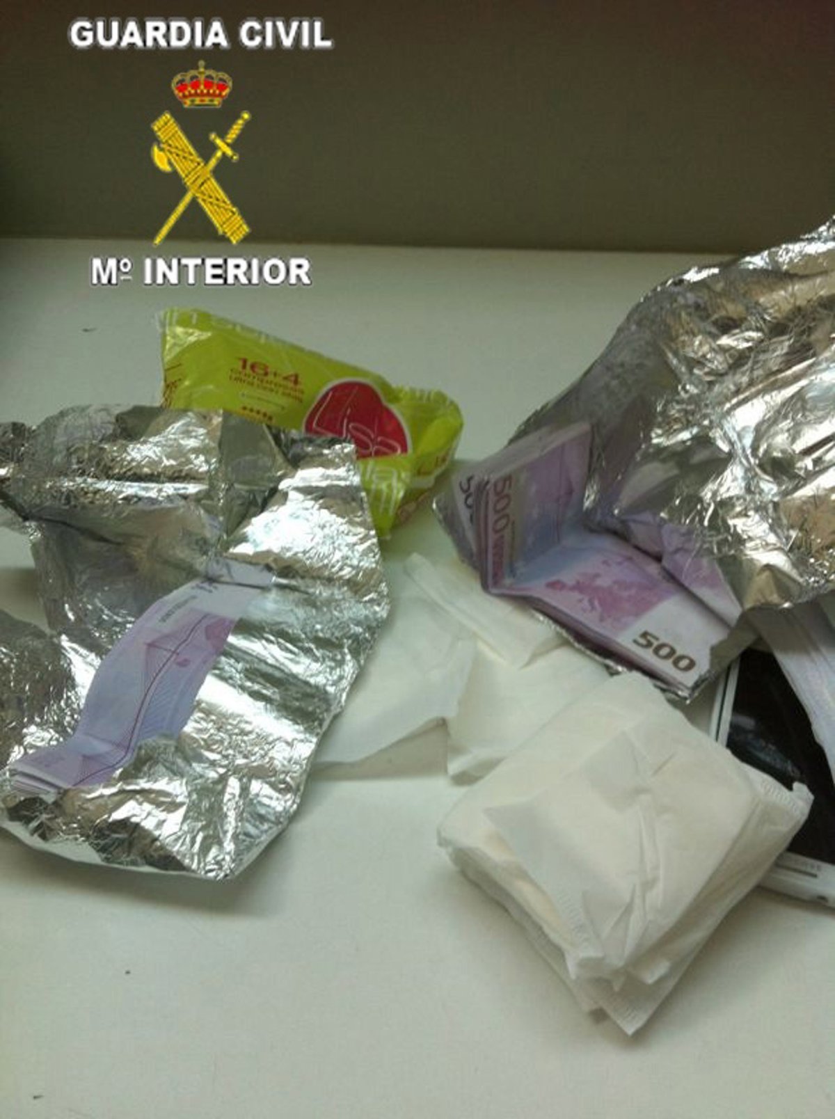 Llevaba 10.000 euros ocultos entre compresas dentro de un bolso, otros 10.000 en el interior de las copas del sujetador, otros 10.000 en un doble fondo en el equipaje, 5.020 euros y 720 yuanes ocultos en una cartera y 20.000 euros en el forro de dos chaquetas dentro de la maleta facturada.