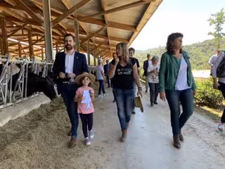 La consellera de Agricultura, Ganadería y Pesca de la Generalitat, Teresa Jord, y el presidente del Parlament, Roger Torrent, visitaron uno de los lugares del Benvinguts a Pags: la explotación ganadera de Can Gel, en Canyamars (Barcelona).