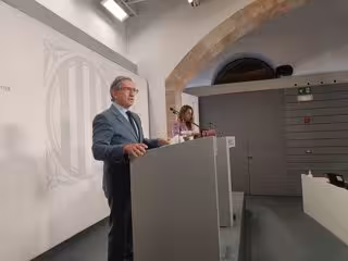 El conseller de Economía, Jaume Giró, y la portavoz del Govern, Patrícia Plaja, en rueda de prensa tras el Consell Executiu. - EUROPA PRESS
