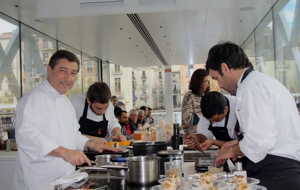 El cocinero Joan Roca ha servido este martes el 'Menú Festival' --un menú gourmet que ofrecen en El Celler de Can Roca-- a 18 comensales en el espacio gastronómico el Vol Gastronòmic de Girona para recaudar dinero y destinarlo al Banc dels Aliments para la compra de productos infantiles.