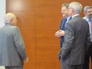 Pujol ha llegado sobre las 12.20 a la conferencia, prevista para las 12.30, y ha coincidido con Puig a su llegada en la entrada del auditorio: se han saludado amablemente y han compartido unas palabras junto al presidente del Círculo de Economía, Antón Costas.