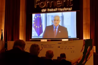 El alto representante para Asuntos Exteriores y Política de Seguridad de la Unión Europea, Josep Borrell, en el XVIII Foro de Diálogo España-Italia - DAVID OLLER - EUROPA PRESS