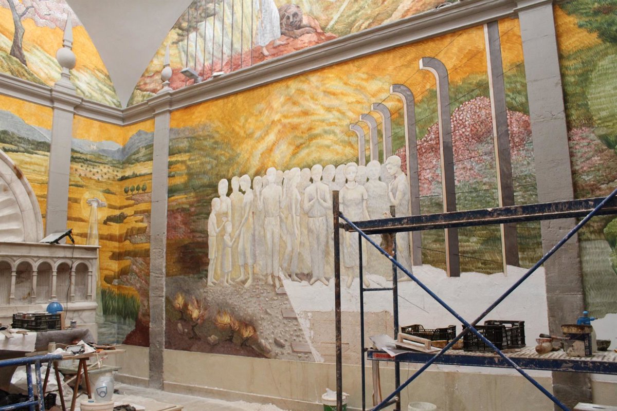 El artista Josep Minguell reivindica la pintura al fresco con un conjunto mural de más de 100 metros cuadrados en la Capilla del Santíssim de la iglesia parroquial de Santa Coloma de Queralt (Tarragona).