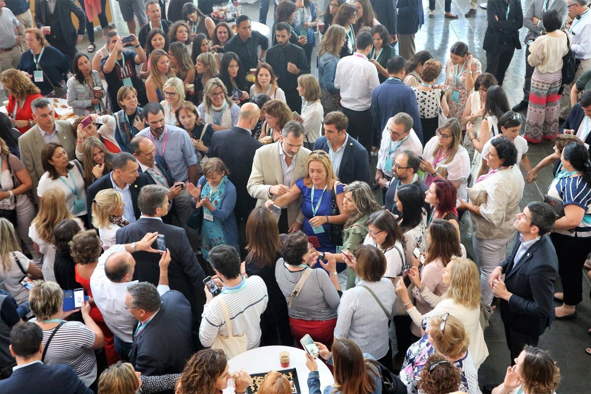 Felipe VI ha saludado este viernes a los jóvenes y profesores asistentes a la IV Jornada de la Fundación Princesa de Girona (FpdGi) 'Cómo educar el talento', durante una pausa-café en que numerosos asistentes se han agolpado para hacerse fotos y 'selfies' con él.
