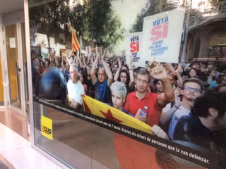 Este mismo martes se ve en las puertas de la sede una gran pancarta con la imagen de las personas que se concentraron ese día contra la presencia policial, con la leyenda: 'El 20 de septiembre de 2017 la policía nacional española asedió esta sede durante más de 7 horas. Gracias a las miles de personas que la defendieron'.