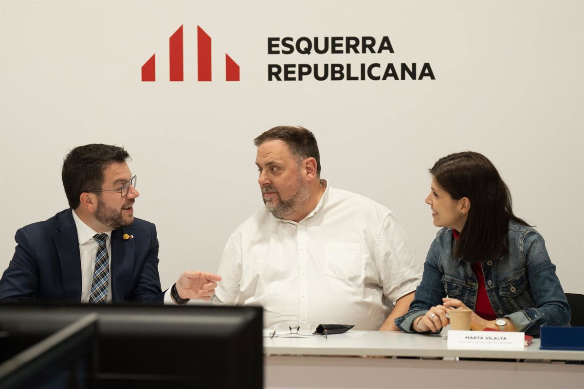 Archivo - (I-D) El presidente de la Generalitat, Pere Aragons; el presidente de ERC, Oriol Junqueras y la secretaria general adjunta y portavoz de ERC, Marta Vilalta. Archivo. - David Zorrakino - Europa Press - Archivo