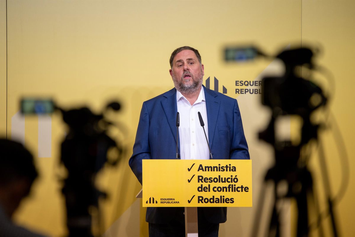 El presidente de ERC, Oriol Junqueras, comparece en una rueda de prensa, a 2 de noviembre de 2023, en Barcelona, Catalunya (España). - Lorena Sopna - Europa Press