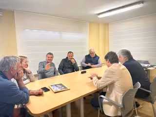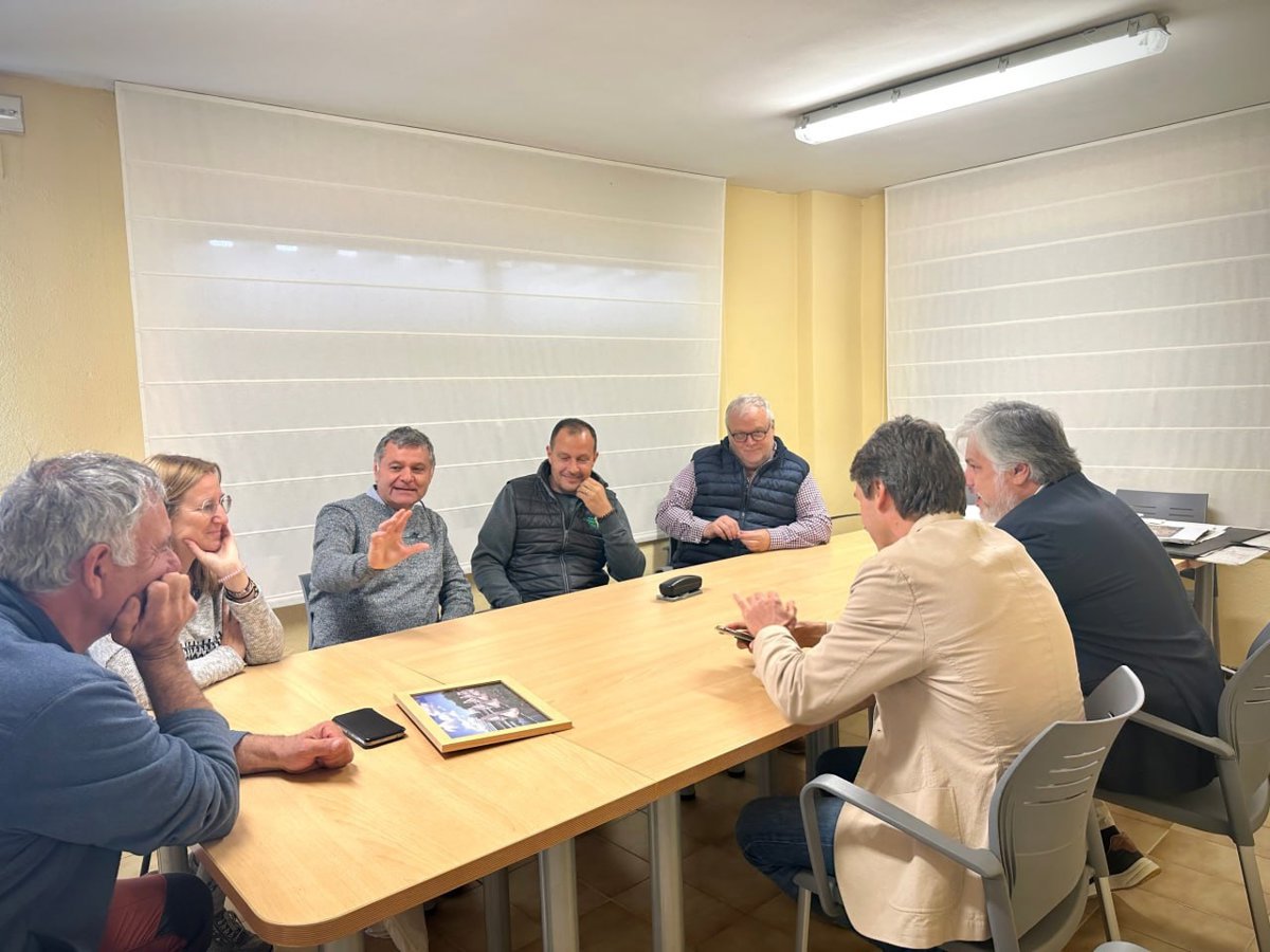 El presidente de Junts en el Parlament, Albert Batet, y el diputado de Junts Salvador Vergés reunidos con representantes de la Comunidad de regantes de la presa de Colomers. - JUNTS