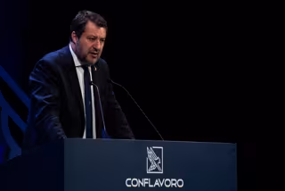 Archivo - 26 September 2024, Italy, Rome: Italy's Minister of Infrastructure and Transport, Matteo Salvini speaks during the National Assembly of Conflavoro at the Eliseo Theater in Rome. Photo: Vincenzo Nuzzolese/SOPA Images via ZUMA Press Wire/dpa - Vincenzo Nuzzolese/SOPA Images v / DPA - Archivo