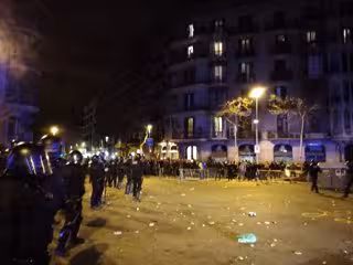 Los Mossos ese día tuvieron que hacer cargas con las porras y lanzar salvas para "garantizar su posición", dado que, según relata el Ministerio Público, los manifestantes les lanzaron artefactos incendiarios, pinturas, basuras y objetos contundentes, haciendo barricadas para llegar a la Delegación.