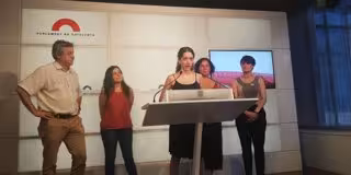 Toni Morral (JxCat), Maria Sirvent (CUP), Joana Sales (Sindicat d'Habitatge del Raval), Susanna Segovia (comuns) y Eva Baró (ERC) - CUP
