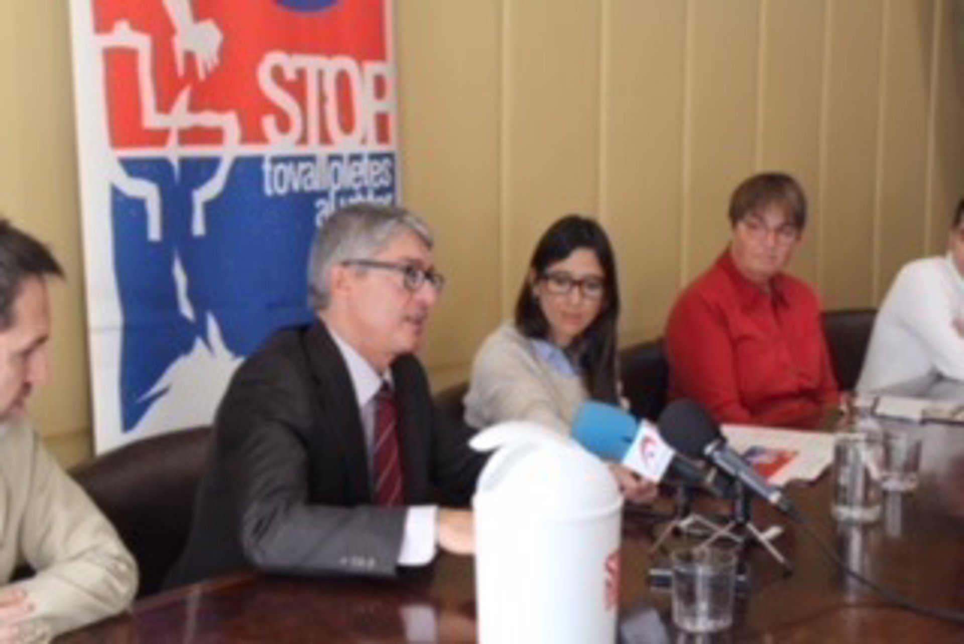 La alcaldesa de Santa Coloma de Gramenet, Núria Parlon, y el director general de Agbar, Ignacio Escudero, han presentado este martes la segunda fase de la campaña 'Stop Tovalloletes al Vater', que pretende obtener resultados en la reducción de las averías que provocan las toallitas abocadas a la red de saneamiento.