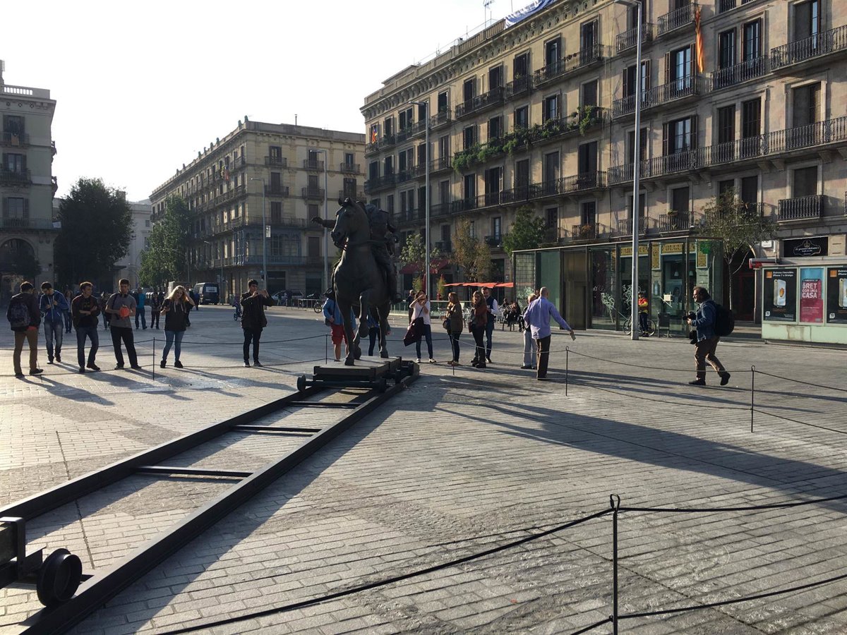 La muestra, que también exhibe la estatua 'La Victoria', está instalada en la plaza del Born, y ha recibido la visita de decenas de curiosos que han tomado fotos a las estatuas y han expresado su opinión sobre la exposición.