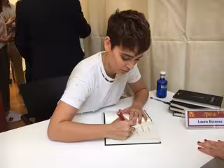 La 'influencer' catalana Laura Escanes ha dedicado y firmado su primer libro, 'Piel de letra', a todos sus seguidores este lunes durante la Diada de Sant Jordi en Barcelona.